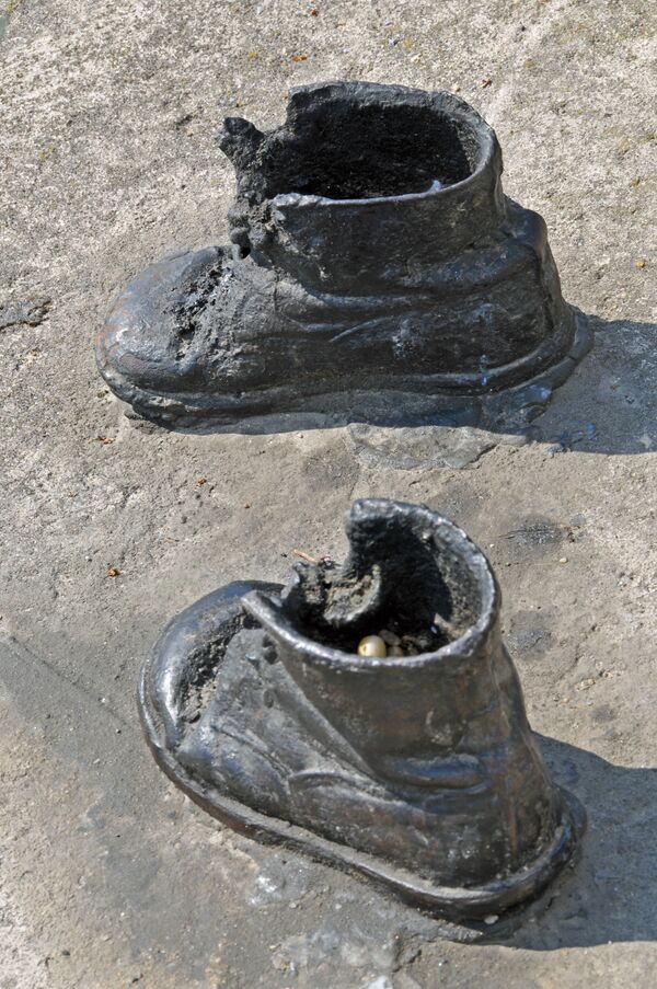 В память о них на протяжении сорока метров на дунайской набережной стоят шестьдесят пар металлических башмаков разных размеров.