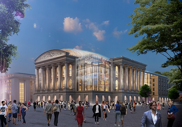В 2012 году, с решением о переводе в Петербург Верховного суда РФ, планы застройки существенно изменились. Проект М. Б. Атаянца (2013), победивший на конкурсе архитектурно-планировочных концепций в начале 2014 года, предполагал, что все новые постройки будут административными[22], утраченный корпус шофа будет восстановлен, а между зданием дворца Эйфмана и набережной появится открытая к реке парковая зона