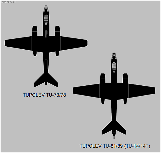 - Ту-14 «78» — модификация проекта «73», оснащённая тремя ТРД отечественного производства;