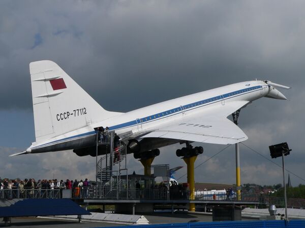 - Ту-144Д № 77112 в музее техники в Зинсхайме (Германия). Установлен рядом с французским «Конкордом»[12]. Использовался как ЗИП по программе Ту-144ЛЛ.