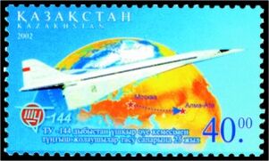 В 2002 году выпущена почтовая марка Казахстана, посвящённая 25-летию полёта Ту-144 между Москвой и Алма-Атой.