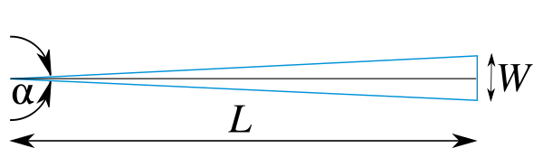 Пусть объект размером W наблюдается с дистанции L под небольшим углом α (то есть выполняется условие обычно встречающееся в артиллерийской практике), и можно применять приближение малых углов. Тогда при выражении угла α в радианной мере имеет место соотношение