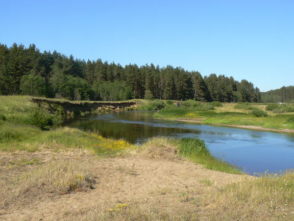 Узкая в верховьях долина в нижнем течении расширяется до 40 м. Русло (ширина 20—25 м, глубина 0,5—0,7 м) образует многочисленные излучины. Вскрывается в начале апреля, ледостав в начале декабря. Средний годовой расход воды — 13,7 м³/с[3].