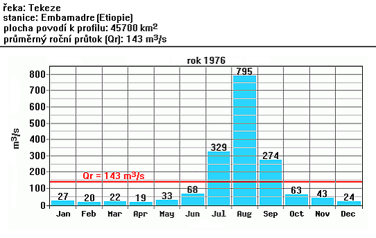 Водный режим Тэкэзе очень похож на водный режим реки Атбары. Максимум достигается в июле и августе. В остальное время уровень воды в реке низкий. В отличие от нижнего течения Атбары стабилен. Среднегодовой расход воды (Qr) во время измерений в 1976 году на станции Эмбамадре в Эфиопии (площадь водосбора профиля 45 700 км²) составил 143 м³/с[4].