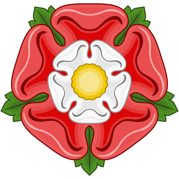 | Значок Королевских роз Англии с изображением красной розы Ланкастера, белой розы Йорка и объединённой розы Тюдоров. | Королевский знак Англии "Роза Тюдоров", сочетающий в себе красную розу Ланкастера и белую розу Йорка. | Роза Тюдоров без короны