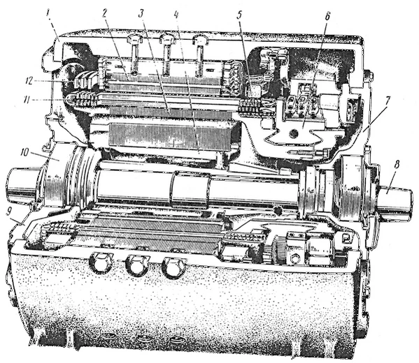 Тяговый электродвигатель, по сути, представляет собой электродвигатель с передачей вращающего момента на движитель транспортного средства (колесо, гусеницу или гребной винт).