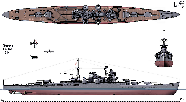 Кроме того, попытку построить в ходе войны тяжёлые крейсера предприняла и Япония. В 1942 году было заложено два крейсера типа «Ибуки»[117]. По своей конструкции они в основном повторяли последние два крейсера типа «Могами» («Кумано»/«Судзуя»), но несли усиленную зенитную артиллерию и были несколько крупнее — ограничивать водоизмещение больше не требовалось. Головной крейсер был спущен на воду год спустя, но приоритеты флота изменились — теперь требовались прежде всего авианосцы. К перестройке приступили в 1943 году, но работы шли с большими трудностями, и к моменту окончания войны корабль оставался недостроенным[3].