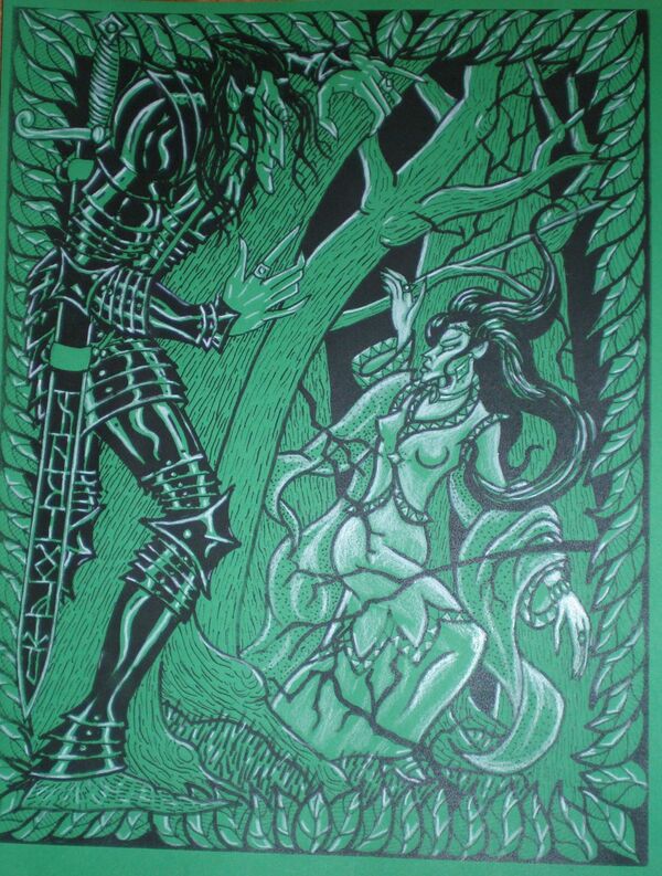Образ злых тёмных эльфов как стереотипной расы-антипода эльфов добрых сформировался в фэнтези на основе драу — злых эльфов из настольной игры Dungeons & Dragons. Впервые они были упомянуты в сеттинге Greyhawk 1-й редакции Advanced Dungeons & Dragons 1977 года[45][2]; как игровая раса они впервые стали доступны в 1985 году[46]. В 1987 году драу появились в новом успешном сеттинге D&D Forgotten Realms («Забытые Королевства»).[47][2] С 1988 года по наше время выходит популярная книжная серия Роберта Сальваторе о тёмном эльфе Дриззте До’Урдене по вселенной Forgotten Realms. В дальнейшем драу появились в таких известных компьютерных играх по «Забытым Королевствам» как Menzoberranzan (1994), Baldur’s Gate II: Shadows of Amn (2000), Neverwinter Nights: Hordes of the Underdark (2003) и Neverwinter Nights 2 (2006). В 2004 году драу, в несколько изменённом виде, были включены ещё и в сеттинг D&D Eberron.[1][2] Впрочем, в некоторых мирах «Подземелий и драконов» «темные эльфы» — всего лишь отдельные падшие эльфы, а не целая раса, например тёмный маг Даламар из сеттинга Dragonlance.[2]