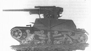 Хотя из предложенных «Виккерс-Армстронг» вариантов Mk.E для серийного производства в СССР был отобран только двухбашенный пулемётный, ещё в 1931 году С. Гинзбург добился выделения финансирования на создание «танка-истребителя» с вооружением из 37-мм пушки «большой мощности»[сн 4] и 7,62-мм пулемёта в спаренной установке, размещавшихся в одиночной конической башне от танка «Т-19 улучшенный». Но реально работа над однобашенным Т-26 началась лишь в 1932 году. Освоение сборки конической башни из криволинейных бронелистов представляло сложности для советской промышленности, поэтому первая башня такого типа, созданная Ижорским заводом к весне 1932 года и предназначавшаяся для танка БТ-2, имела цилиндрическую форму. Аналогичную башню предполагалось устанавливать и на вариант «танка-истребителя» Т-26[43]. На испытаниях клёпаного и сварного вариантов башни предпочтение было отдано первому, который был рекомендован для принятия на вооружение после доработки выявленных недостатков и добавления в кормовой части ниши для установки радиостанции[44]. Для проведения войсковых испытаний Ижорский завод должен был изготовить партию из 10 башен с 21 января 1933 года[45].