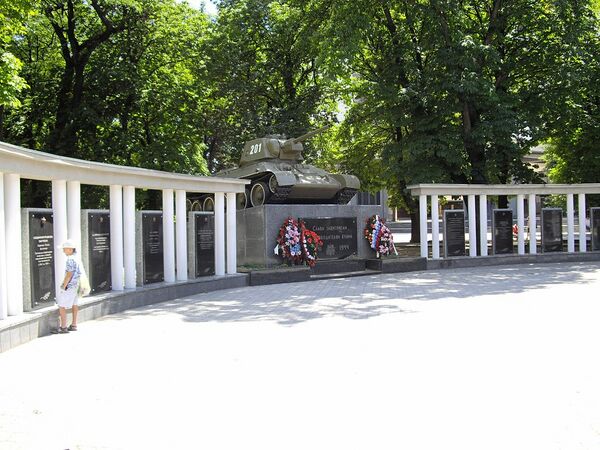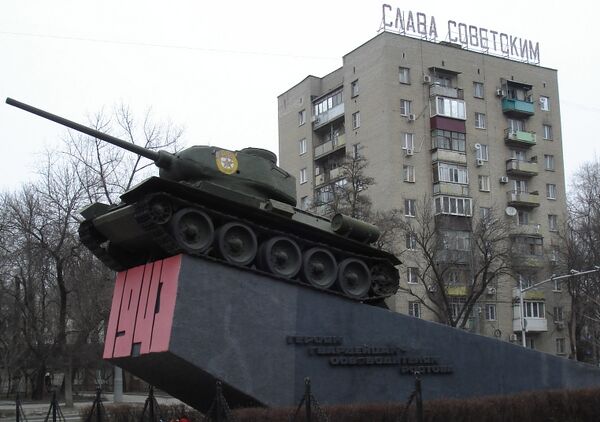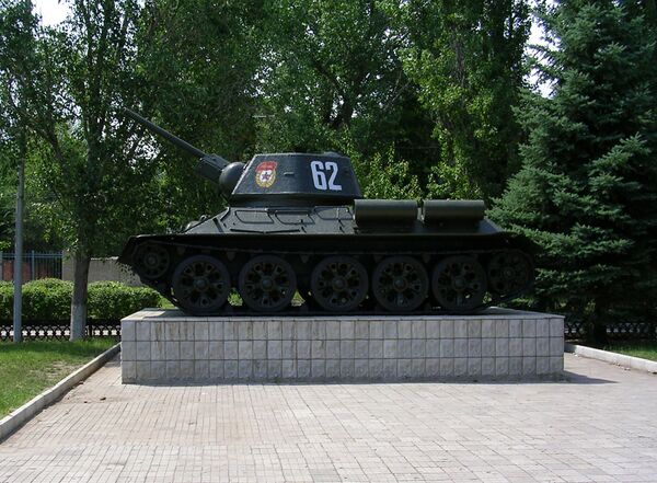 Довольно оригинальный памятник из Т-34 был придуман в Волгограде: вдоль условной линии фронта, до которой дошли войска вермахта, в 1948 году были расставлены 18 башен «тридцатьчетвёрок» на постаментах.