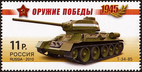 Т-34 в различных модификациях изображён на почтовых марках России и СССР: