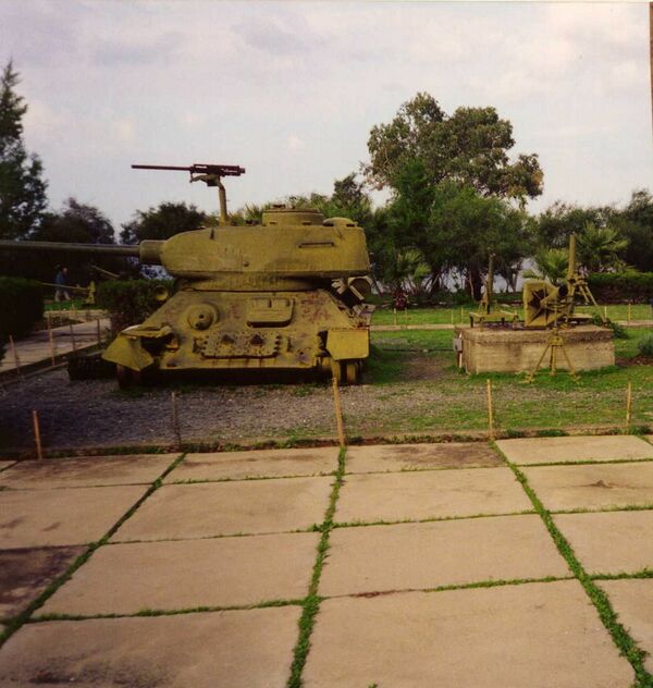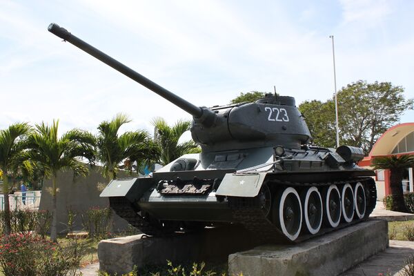 - Т-34/122 — кубинская самоходная артиллерийская установка, установлена 122-мм гаубица Д-30, часть башни вырезана.