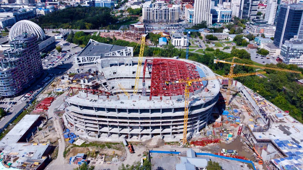 Строительство началось 31 октября 2019[2]. Весной 2020 года строители закончили забивать 2500 свай в основание сооружения и приступили к наземной части. В июне 2021 года застройщик приступил к установке несущих конструкций купола[11]. К октябрю 2021 смонтировали кровлю[13][14], в апреле 2022 на 99 % завершены монолитные работы по основной конструкции арены, началось остекление[15][16].
