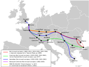 «Восточный экспресс» — это пассажирский поезд класса «люкс» частной компании Orient-Express Hotels, курсирующий между Парижем и Константинополем (Стамбулом) с 1883 года. В своей «Автобиографии», вспоминая про первое путешествие этим составом, Агата называет его поездом своей мечты и пишет, что всю жизнь мечтала проехаться в нём: «Часто, направляясь во Францию, Испанию или Италию, я видела Восточный экспресс в Кале. И мне всегда хотелось сесть в него. „Симплон — Милан — Белград — Стамбул…“» В поезде она познакомилась со многими людьми, но в принципе избегала общения, от которого ей всё же не удалось полностью избавиться. В Стамбуле она бывала в отеле «Токатлиан», который будет фигурировать в романе как место, где останавливался Пуаро на пути из Сирии. В столице Турции её опекал голландский инженер, после прощального ужина с которым она его больше никогда не видела[12]. Из Стамбула она продолжила путешествие до Алеппо и Дамаска. В столице Сирии остановилась в «Ориент-Палас-отеле», после чего добралась на автобусе до Багдада[13].