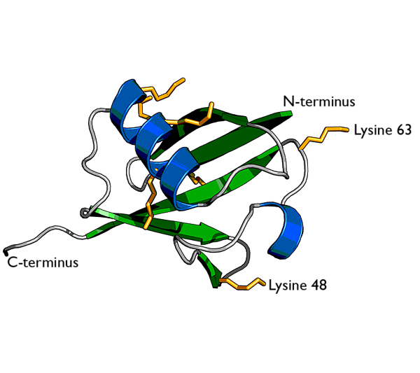 Полиубиквитиновые цепочки, образованные связью через остаток лизина-63, не связаны с протеасомальной деградацией белка-субстрата. Напротив, эти полиубиквитиновые цепочки играют ключевую роль в координации других процессов, таких как направленный эндоцитоз, воспаление, трансляция и репарация ДНК[13].