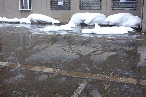 Снегоплавильная опрыскивательная система впервые появилась в городе Нагаока, префектура Ниигата, Япония. Она устанавливается только в относительно тёплых регионах, где вследствие природного феномена «снежной страны» выпадает много снега, от Хокурику до Тохоку. Подземные воды выкачиваются и разбрызгиваются из спринклеров, встроенных в дороги на проезжие части, чтобы растопить снег. На склонах и дорог с большим уклоном аналогичный эффект достигается изливанием через систему воды на дорогу сверху склона. В некоторых районах откачка грунтовых вод для уборки снега вызывает проблемы оседания грунта.