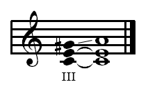 Увеличенное трезвучие находится в гармоническом миноре на III ступени и в гармоническом мажоре на VI (пониженной) ступени, и разрешается в мажоре в тонический квартсекстаккорд, в миноре — в тонический секстаккорд[3]: