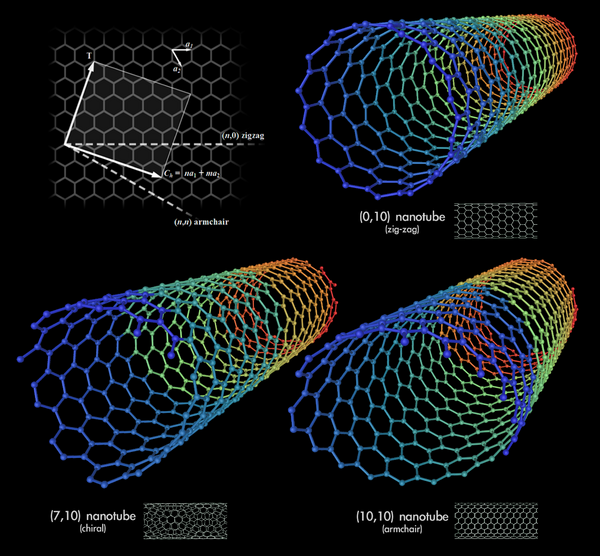 На основе индексов хиральности одностенные нанотрубки разделяют на 3 типа: