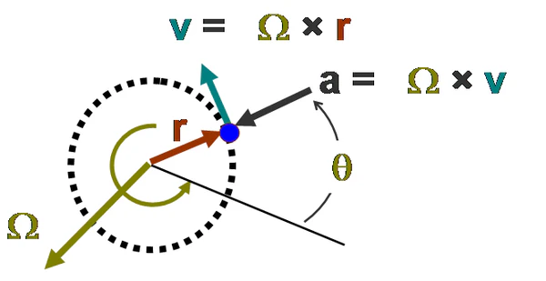 Углова́я ско́рость показывает, на какой угол поворачивается радиус-вектор точки за единицу времени.