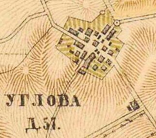 УГЛОВА — деревня господина Всеволожского, по просёлкам, 22 двора, 55 душ м. п. (1856 год)[14]