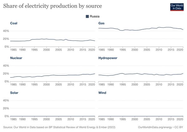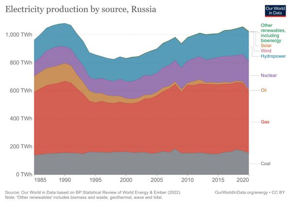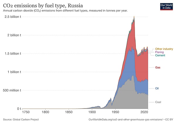 В целом в России к 2020 году выбросы СО2 от сжигания угля для любых нужд достигли 356,95 млн т из 1,58 млрд т годовой эмиссии СО2[144]. Эксперты называли перевод угольных электростанций на газовое топливо необходимым условием для улучшения экологической обстановки в России. Однако несмотря на то, что национальный проект «Экология» предусматривал до 2024 года около 500 млрд рублей инвестиций на подобные меры, российские власти отказывались экономически стимулировать сокращение выбросов СО2[140][139]. Например, Минэкономики России не включило налог на выбросы СО2 в стратегию низкоуглеродного развития РФ до 2050 года[142].