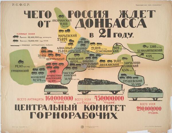 После Октябрьской революции объёмы добычи угля сократились и вернулись к показателям конца XIX века. В 1922 году в стране было добыто 11,3 млн т угля, чего было недостаточно для промышленности. Практически одновременно угледобывающие центры страны начали смещаться на восток. Например, в 1917 году на Урале добывали уже 1,2 млн т против 448 тыс. т шестью годами ранее. Благодаря реализации плана ГОЭЛРО и восстановлению промышленности в 1922—1928 годах объёмы добычи угля выросли более чем в 3,5 раза и достигли 35,5 млн т. Позднейший курс на форсированную индустриализацию предполагал увеличение угледобычи до 160—170 млн т в год к концу первой пятилетки в 1933-м. Это было возможно только при активном развитии угольной промышленности, и в 1920—1940 годах в эксплуатацию были введены 285 новых шахт с общей годовой производственной мощностью более 100 млн тонн. Их горняков оснащали новыми технологиями: врубовыми машинами, бурильными и отбойными молотками, погрузочными машинами и другой техникой[23][32].