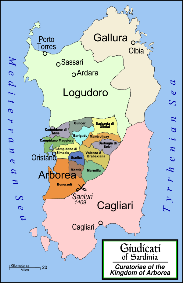 В 1323 г. в надежде стать правителем всего острова признал себя вассалом Хайме II Арагонского, которому папа Бонифаций VIII пожаловал титул короля Сардинии и Корсики.