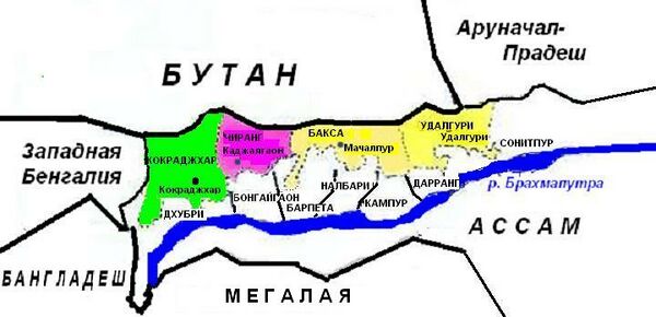 Занимает территорию дуаров, примыкает к Бутану, но не имеет выхода к Брахмапутре. На северо-востоке также примыкает к штату Аруначал-Прадеш.