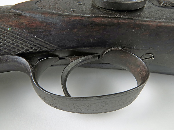 - спусковой крючок или кнопка, педаль и т. п., с помощью которого стрелок управляет механизмом. Если необходимо дистанционное управление огнём, вместо спускового крючка применяются электромагнитные или пневматические устройства;