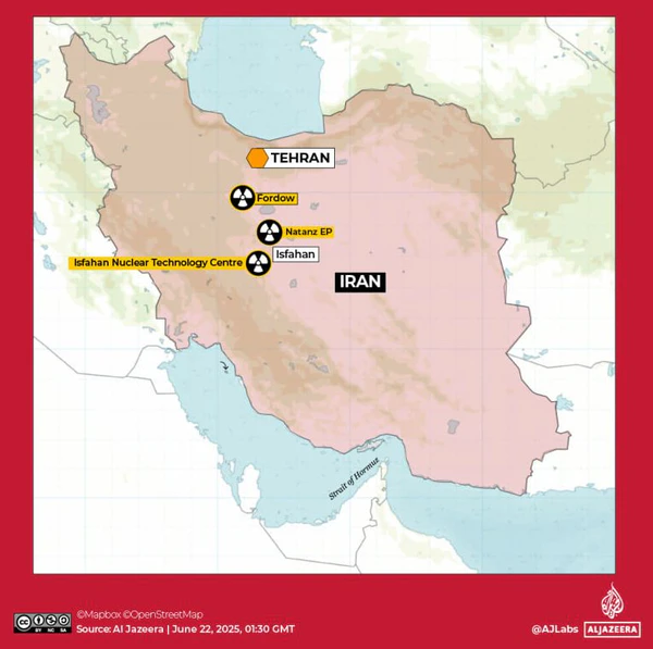 Заместитель директора Организации по атомной энергии и глава Национального центра ядерной безопасности Ирана Реза Кардан заявил, что «за пределами» объектов и установок, пострадавших от авиаударов США, «не наблюдалось никакого радиационного загрязнения или ядерной радиации»[20].