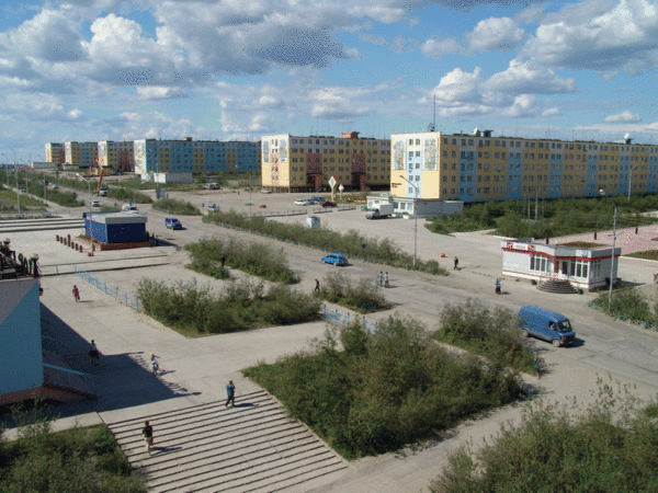 Город состоит из двух районов — Надёжного и Нового города; примечательно, что микрорайон «Новый город» не имеет названий улиц, имеется только нумерация домов. Всего в микрорайоне «Новый город» расположено 36 пятиэтажных домов (34 многоквартирных дома и 2 общежития под номерами 6 корпус 1 и 6 корпус 2 соответственно). Все они стоят на сваях каменной застройки.