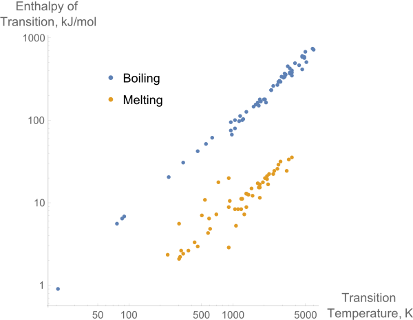 Как правило теплота испарения в несколько раз больше теплоты плавления веществ.