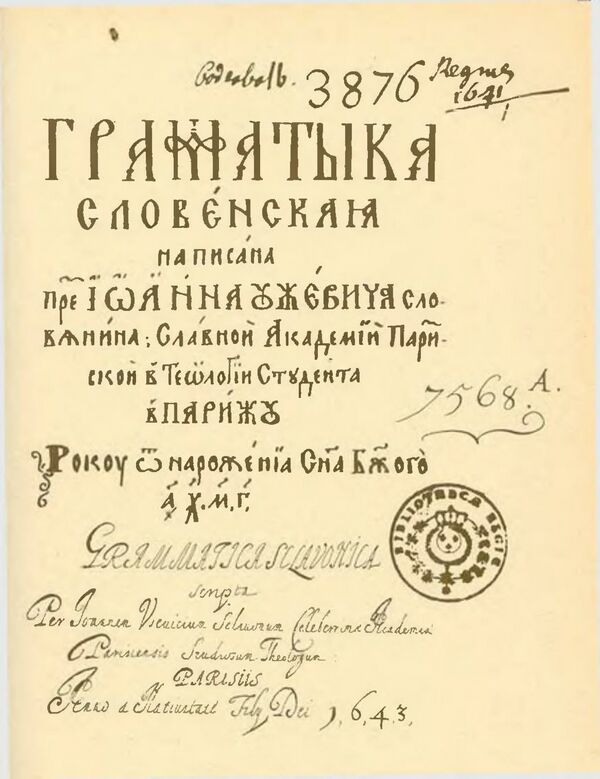 - Грамматыка словенская (Париж, 1643; б.м.н. 1645).