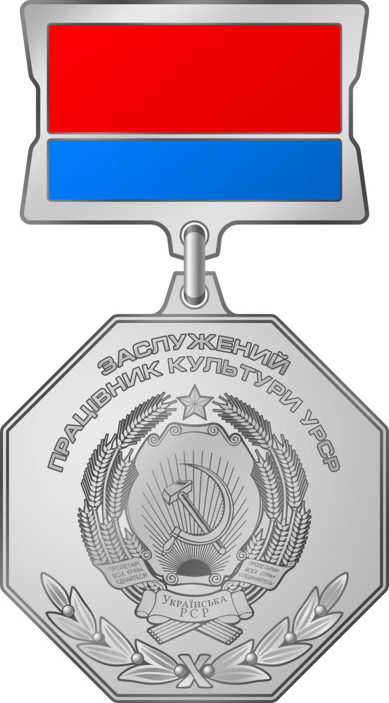 - Заслуженный работник культуры Украинской ССР за активное участие и высокие показатели в агитационно-пропагандистской работе (Указ Президиума Верховного Совета Украинской ССР от 24 сентября 1979 г.)