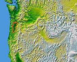 Продольная мульдообразная депрессия расположена между двумя системами хребтов (Береговые хребты и Каскадные горы). Климат здесь теплее и суше, чем на побережье, количество осадков до 1000 мм. В лесах наряду с дугласией (Pseudotsuga) распространен орегонский белый дуб, или дуб Гарри (Quercus garryana), встречаются земляничное дерево (Arbutus menziesii) и некоторые другие средиземноморские представители[1].