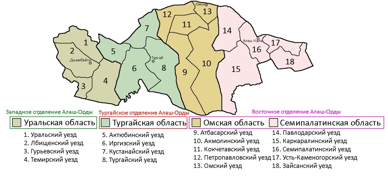 | • 11 сентября 1918 | Реорганизация в Западное отделение Алаш-Орды |