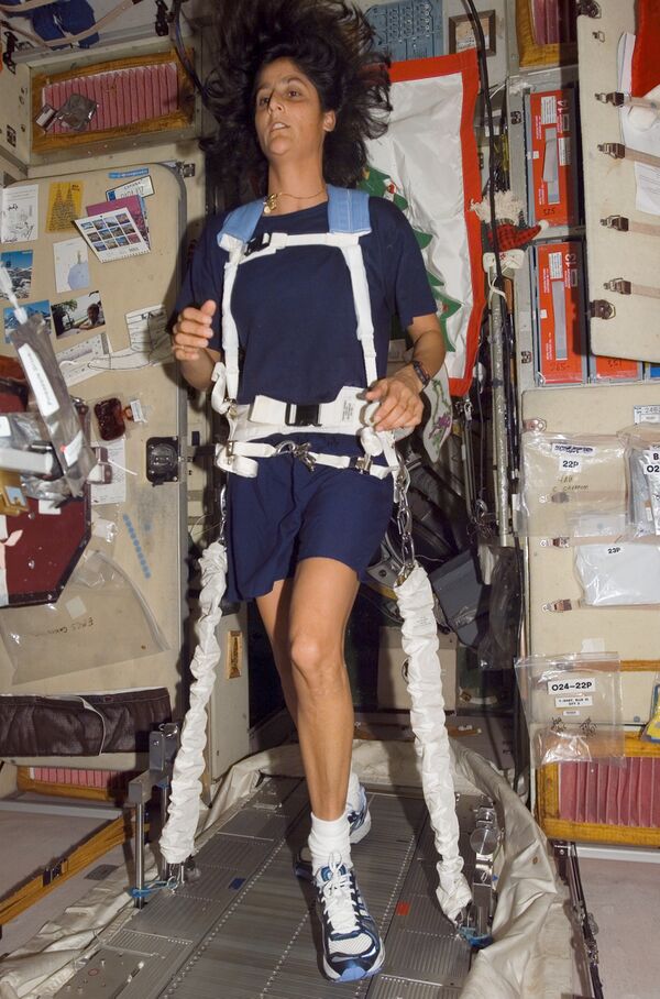 Во время своего пребывания на орбите Уильямс 16 апреля 2007 года приняла заочное участие в марафоне, который ежегодно проводится в Бостоне. Для марафонского пробега в условиях невесомости был сооружён специальный тренажёр. Уильямс с нагрудным номером 14000 стартовала одновременно с остальными участниками марафона, когда станция находилась над Тихим океаном, а финишировала над территорией России. На преодоление 42 километров 195 метров Уильямс затратила 4 часа 23 минуты[4].