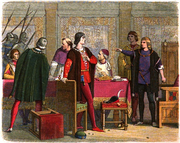 Однако вскоре произошли события, поколебавшие верность Уильяма Гастингса Ричарду. 9 июня на королевском совете было сообщено, что дети Эдуарда IV являются незаконнорождёнными[2]. А уже 13 июня во время заседания королевского совета Ричард, по скудным сообщениям хронистов, приказал арестовать двух епископов и двух лордов, в том числе и Уильяма Гастингса, обвинив их в заговоре, причём Уильям был казнён без суда сразу после ареста[1]. Эта же версия нашла отражение в «Истории Ричарда III» Томаса Мора. Существует версия, что судебное разбирательство всё же было, и казнён Уильям Гастингс был через неделю, 20 июня[3].
