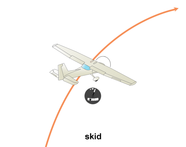 Когда самолёт летит боком, шарик индикатора скольжения не находится в своем среднем положении. При таком положении самолёта его аэродинамическое сопротивление существенно возрастает, и обтекание крыльев воздухом становится неодинаковым: крыло, летящее немного позади, затеняется фюзеляжем и имеет меньшую подъёмную силу[3].