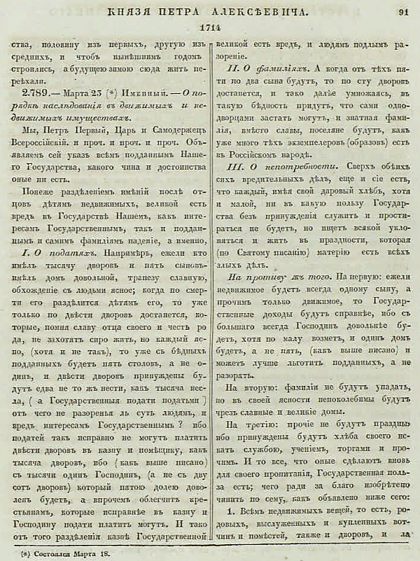 «Понеже разделением имений после отцов детям недвижимых великой есть вред в государстве нашем, как интересам государственным, так и подданным и самим фамилиям падение». Указ запрещал отчуждать недвижимость, кроме случаев «нужды» и давал право наследовать неделимую недвижимость только одному сыну (как правило — старшему)[3]. Тем не менее это не был принцип майората.