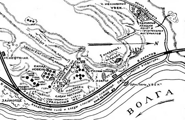 Помимо прочего, начиная с конца XIX века территория городища активно застраивалась: вдоль Волги была проведена линия железной дороги, комплекс нефтехранилищ, был сооружён железнодорожный мост и крупный нефтеперерабатывающий центр. Всем этапам строительства предшествовали инженерные работы, а археологические исследования были лишь следствием проводимых мероприятий.[54]