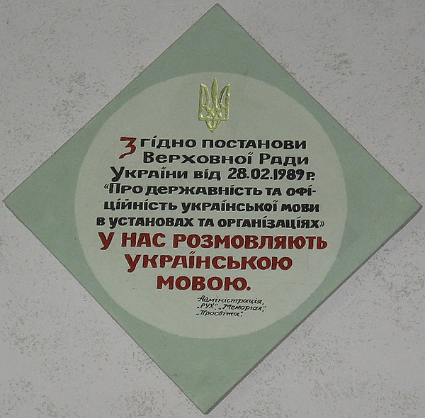 - продвижение украинского языка в быту — вывески, надписи, указатели, ценники, афиши, визитки на украинском языке[3].