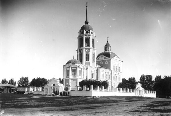 Новая каменная церковь была заложена в 1801 году. Нижний храм освящён шадринским протоиреем Павлом Золотавиным с благословения пермского епископа Иустина в честь Сретения Господня в 1813 году, а верхний храм был освящён во имя святой Троицы в 1836 году. Крест, венчающий купол, был на высоте 42 метров, толщина стен — 1,2 метра. Колоколов было всего 10: самый лёгкий колокол весил 15 пудов, самый тяжелый — 115 пудов 31 фунт. Каменная ограда была построена в 1828 году по проекту инженера Лалетина. Кирпич для ограды 70 тысяч штук, в том числе 20 тысяч круглого, подрядились делать далматовские мастера Федот Яковлевич Старцев и Никита Егорович Добролюбов. Парадные металлические двери и решетки для ограды изготовлены по рисункам Павла Александровича Устинова, стены алтаря расписаны далматовским живописцем Павлом Никулиным. В 1845 году вокруг церкви была обведена каменная ограда[2].