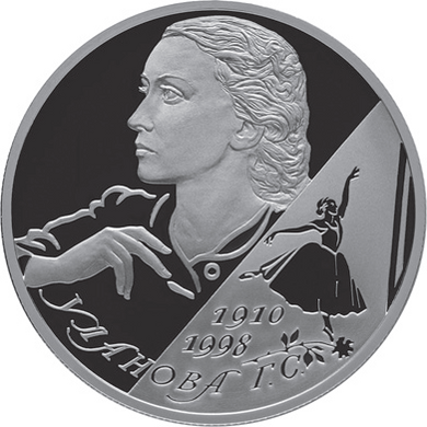 - 1 декабря 2009 года Центральный банк России объявил о выпуске в обращение памятной серебряной монеты номиналом в 2 рубля, посвящённой столетию со дня рождения Галины Улановой. Монеты выпущены тиражом 5000 штук и изготовлены из серебра 925 пробы, вес чистого металла 15,5 грамм (пол-унции). На них проставлена дата 2010 год.