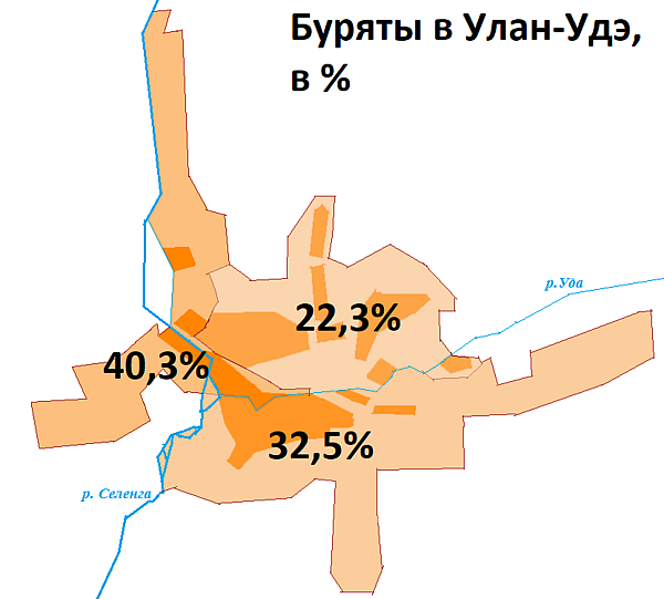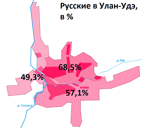 русские - 62,1% буряты - 31,8% остальные - 6% |