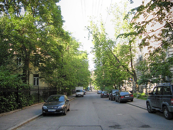 Участок улицы, идущий под углом к Малой Невке и срезавший угол Лопухинского сада, проложили в 1940-х гг. (раньше улица огибала сад под прямым углом).