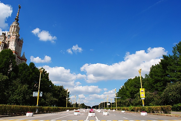 - Главное здание МГУ им. М. В. Ломоносова — между улицами Академика Самарского, Академика Хохлова и Лебедева и Менделеевской улицей.