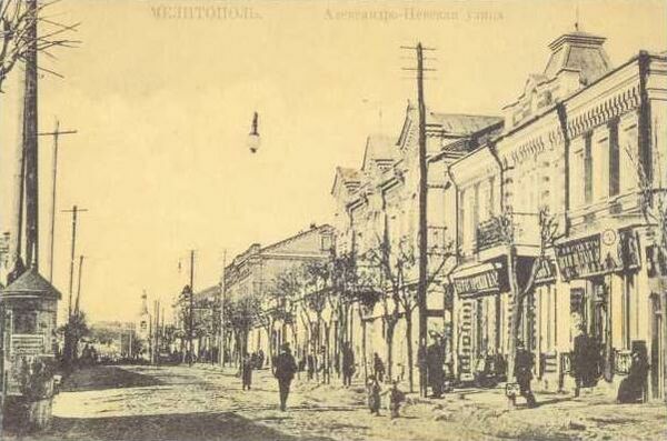 На улице Александра Невского располагалось множество магазинов и лавок: продуктовых, одёжных, шляпных, обувных, книжных, мебельных. Местом оживлённой торговли была и Базарная площадь (нынешняя Соборная площадь). В начале XX века на ней было 77 торговых лавок, 26 из которых принадлежали караимам. На Базарной площади находился и артезианский колодец, от которого шёл водопровод, обеспечивавший водой треть Мелитополя.