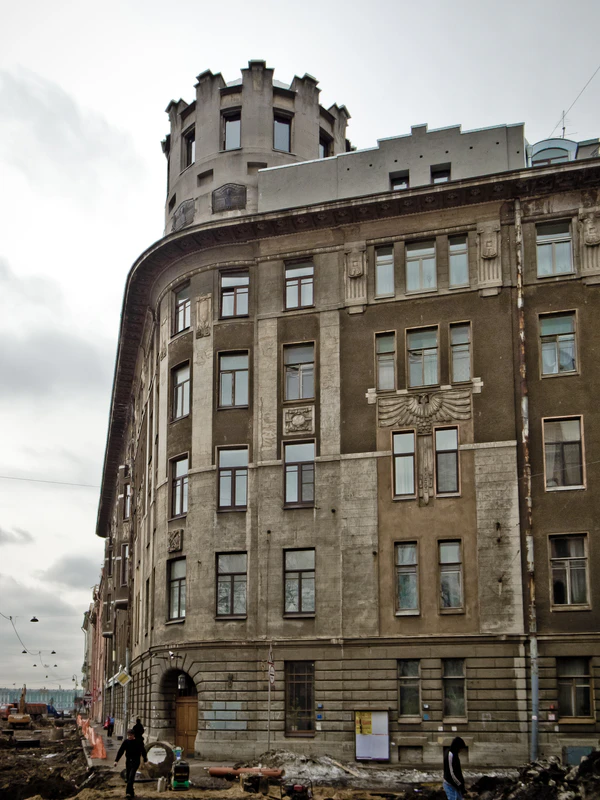 Архитектурный стиль: модерн. В доме проживали: в 1911—1912 годах — учёный-арабист И. Ю. Крачковский; в 1916 году — художник М. А. Балунин.