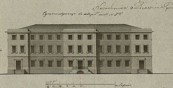 Доходный дом графа Г. И. Ностица (1813; 1822; 1905 — архит. А. Ф. Мейснер —построены заново левая угловая часть, центр и правое крыло — переделка фасада)